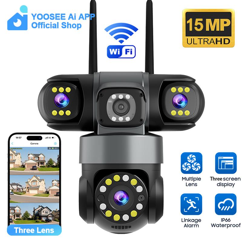 YOOSEE Ai APP Camera Outdoor Waterproof HD 6MP WIFI IP CCTV Night Vision Two-Way Intercom Smart Camera PIR Mobile Tracking Three Lens Camera