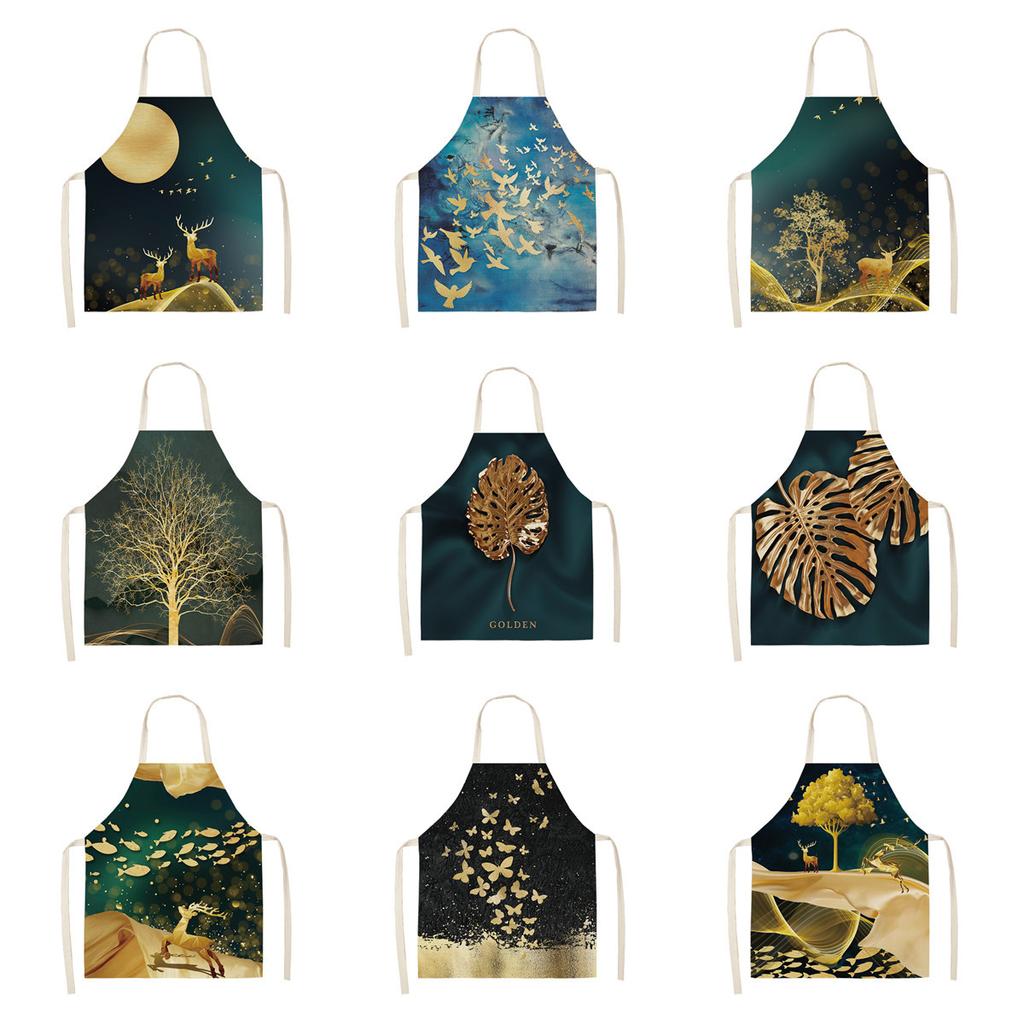 Deer Butterfly Kitchen Aprons for Women Cotton Linen Bibs Household Cleaning Kitchen Apron Maid Apron Aprons