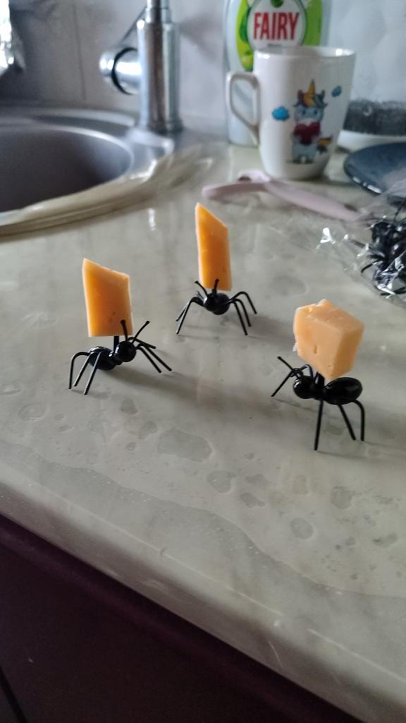 Cool ants, they stand on their legs and don't fall. You can only make really small canapés on them. I stick them into cheese slices, it's convenient)