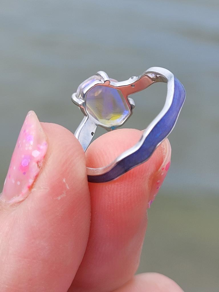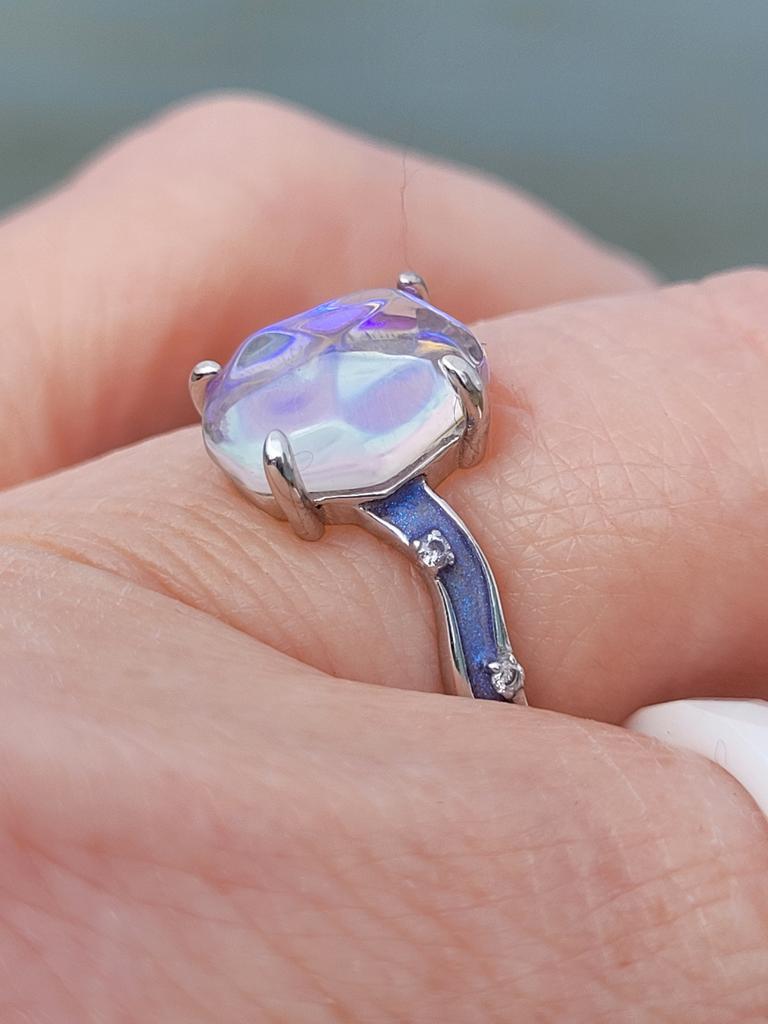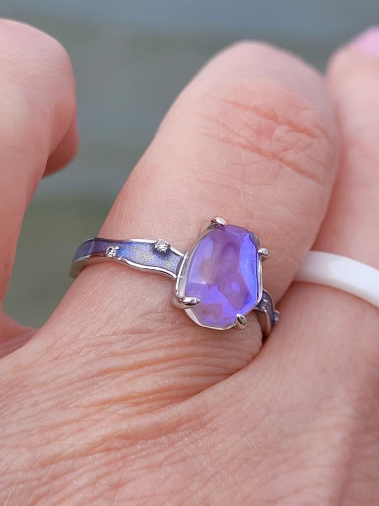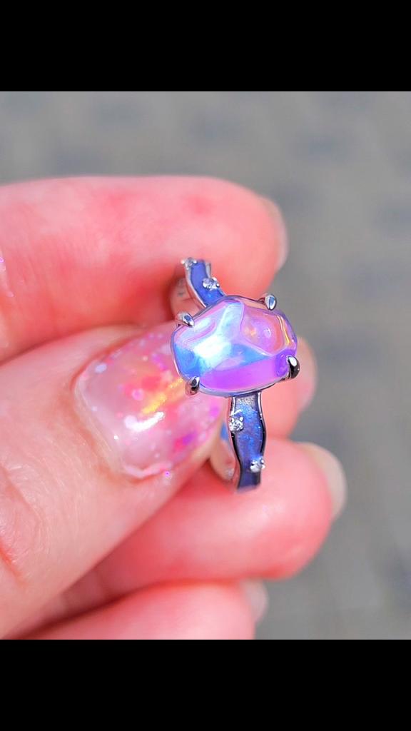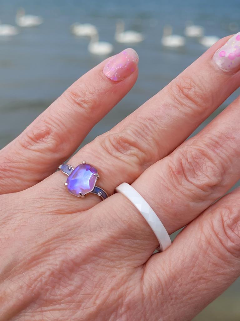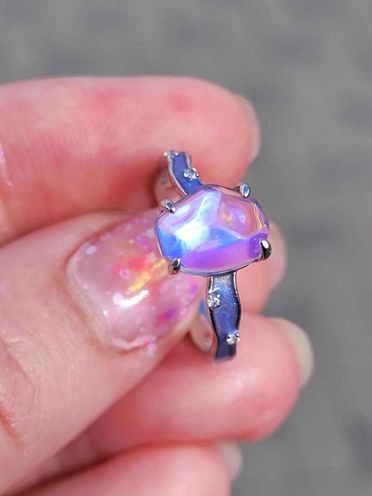 BAMOER 925 Sterling Silver Purple Stone Aurora Ring Wave Band Ring for Women Party Fine Jewelry Gift