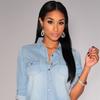 Womens Denim Jeans Shirt Tops Long Sleeve Button Jacket Plus Sizes