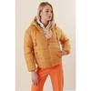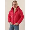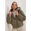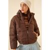 Women's Black Hooded Waist Drawstring Puffer Coat Hzl22w-bd151171