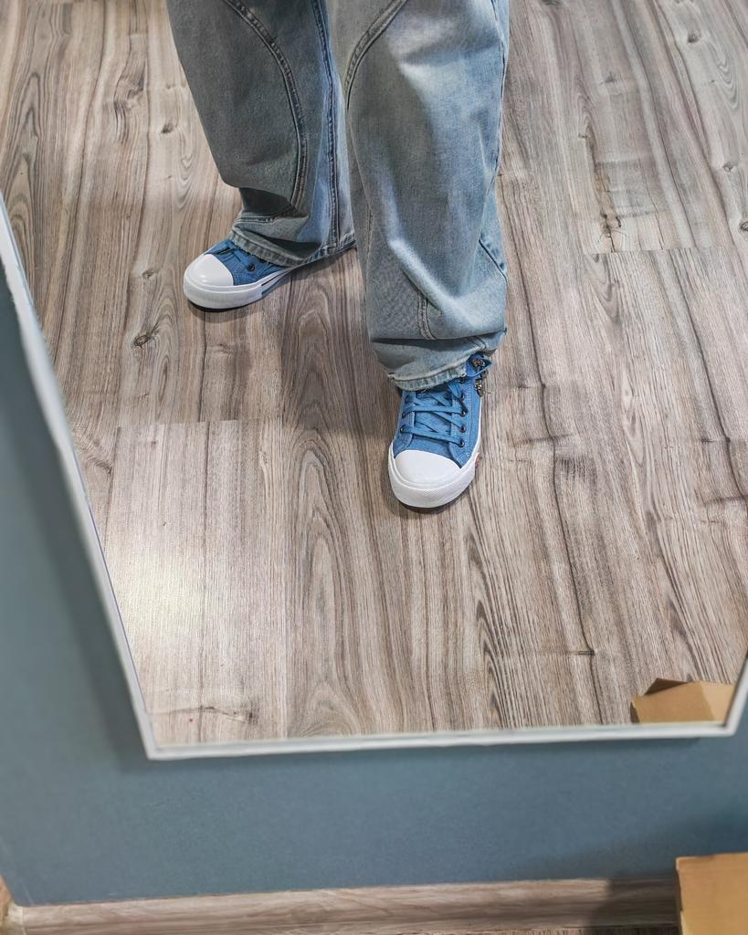 A pair of denim sneakers. I'm ok. Thank you JOOM. Basketball looks exactly like in the photo. I haven't worn them yet because it's cold. I will definitely wear it in the spring. I had another pair and loved them. Thanks JOOM!