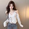 Women's Knitted Crop Top Chain Halter Solid Color Slim Top
