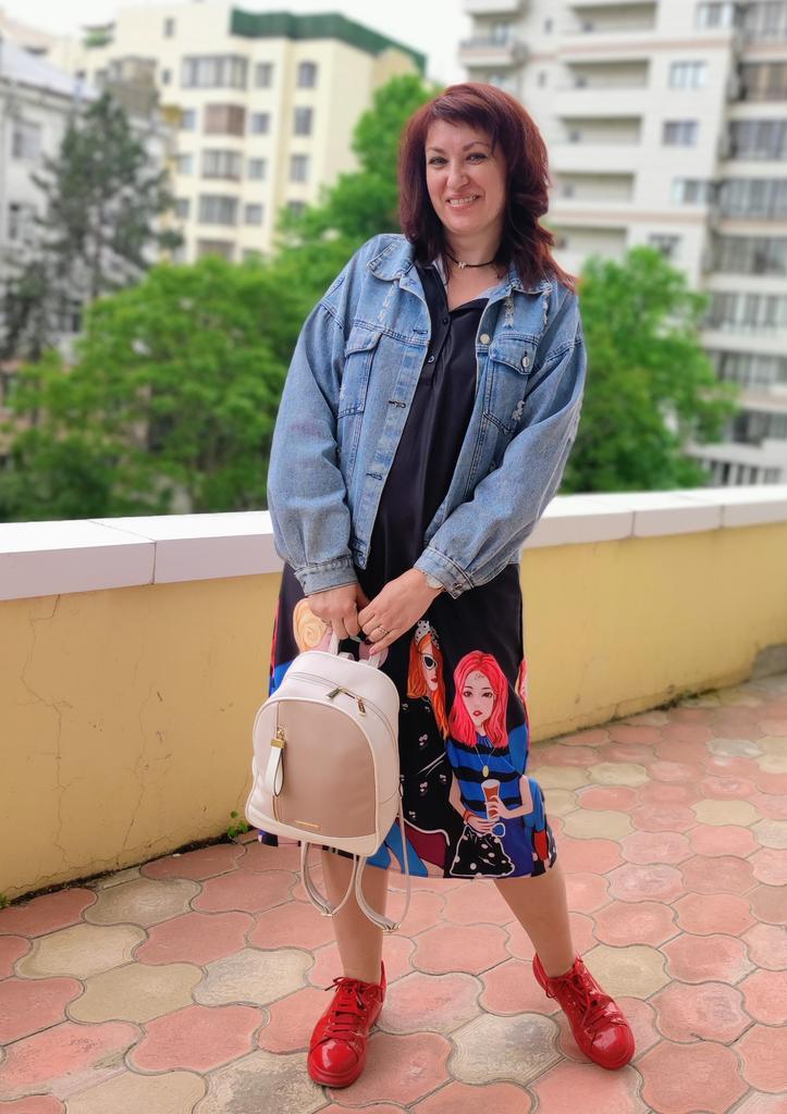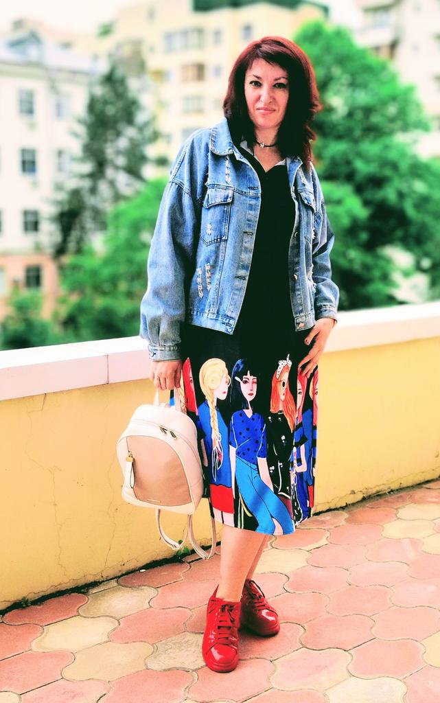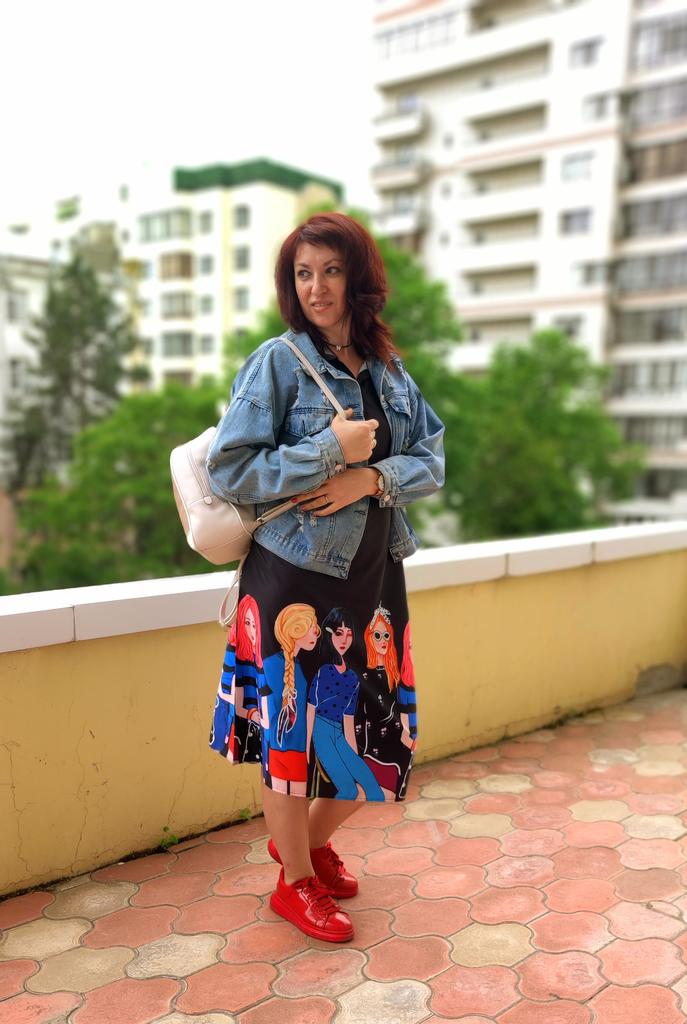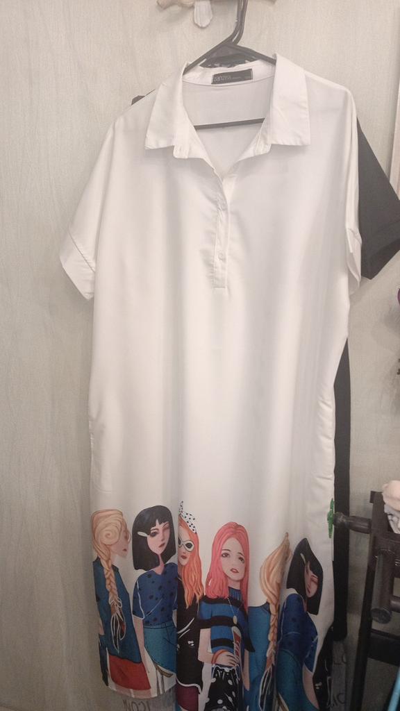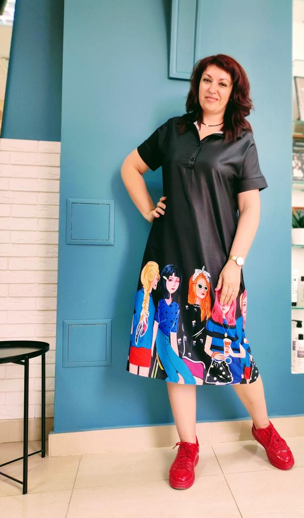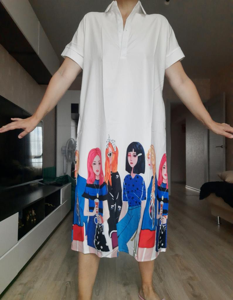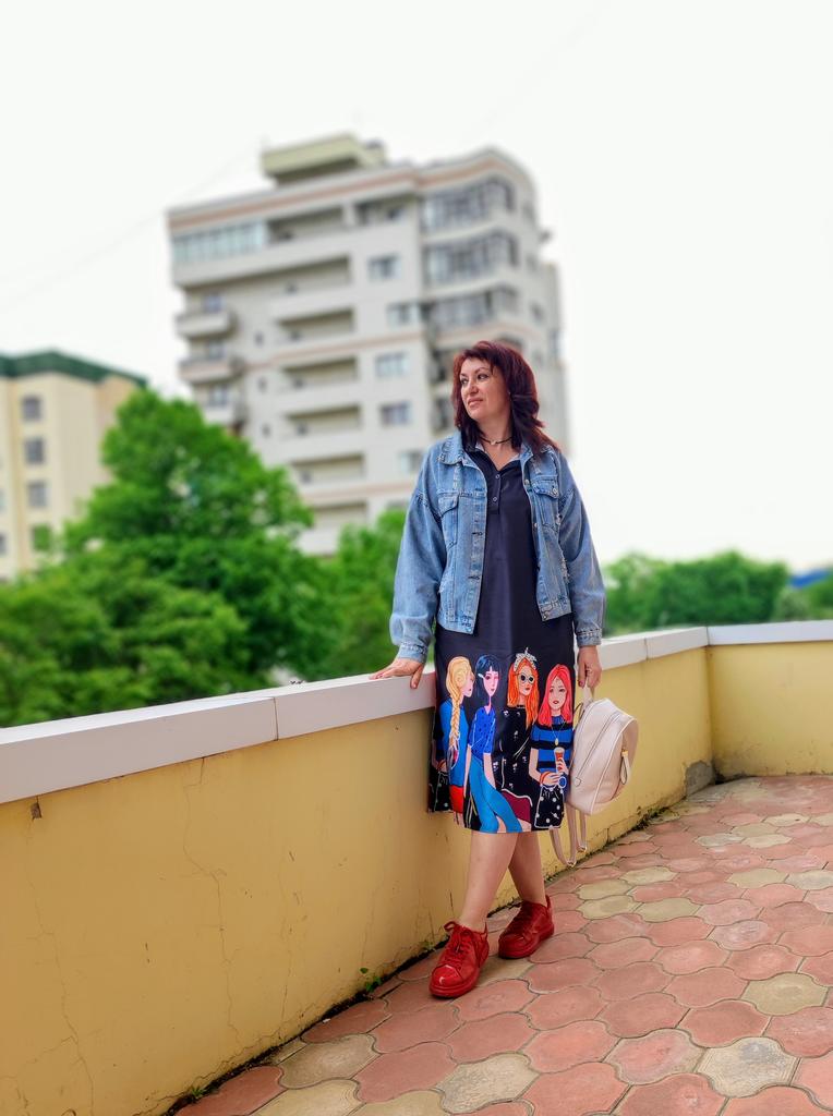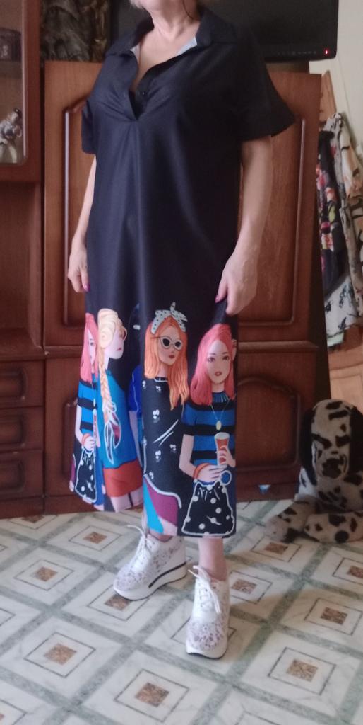For size 48-50, the shoulders fit normally, the length at 170 cm is to the middle of the calf, not wide. But for me, it looks better on me with a belt than without. It looks good with both sandals and sneakers.
