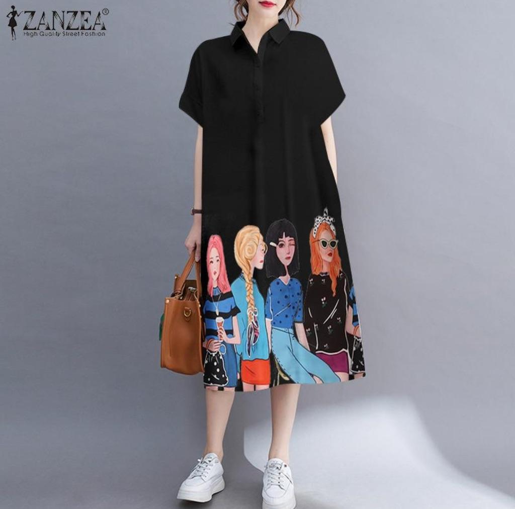 ZANZEA Women Casual Turn Down Collar Short Sleeve Summer Shirt Dress