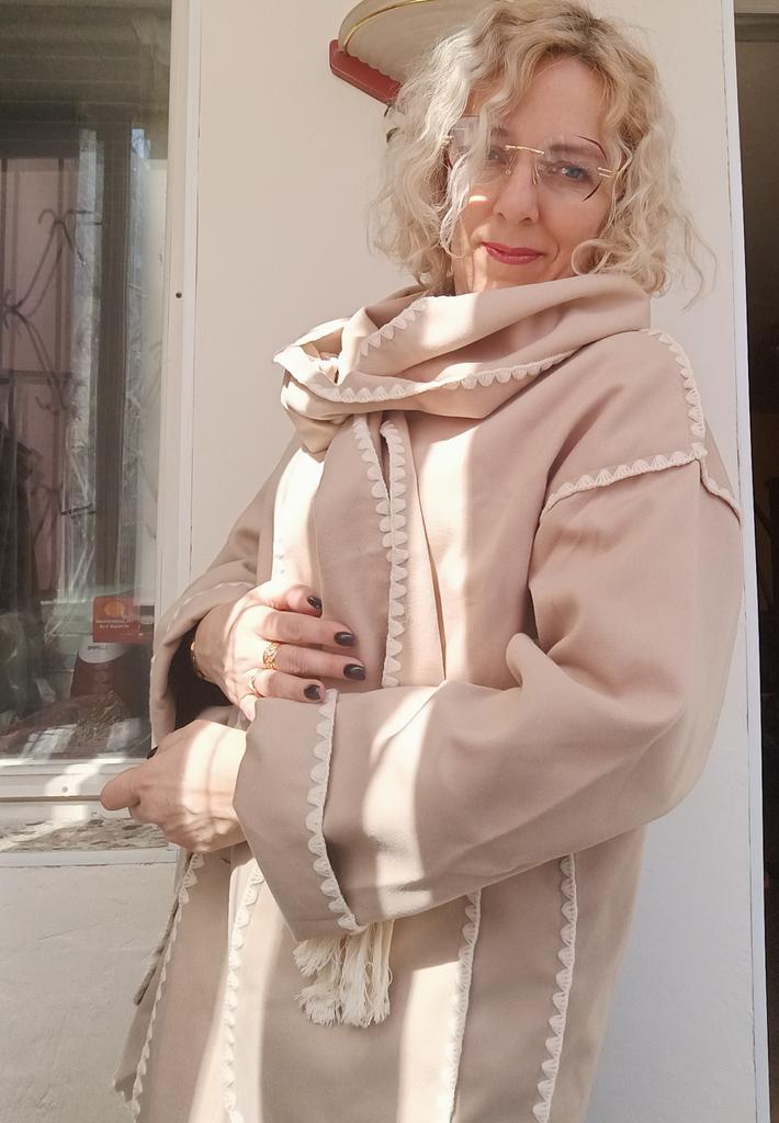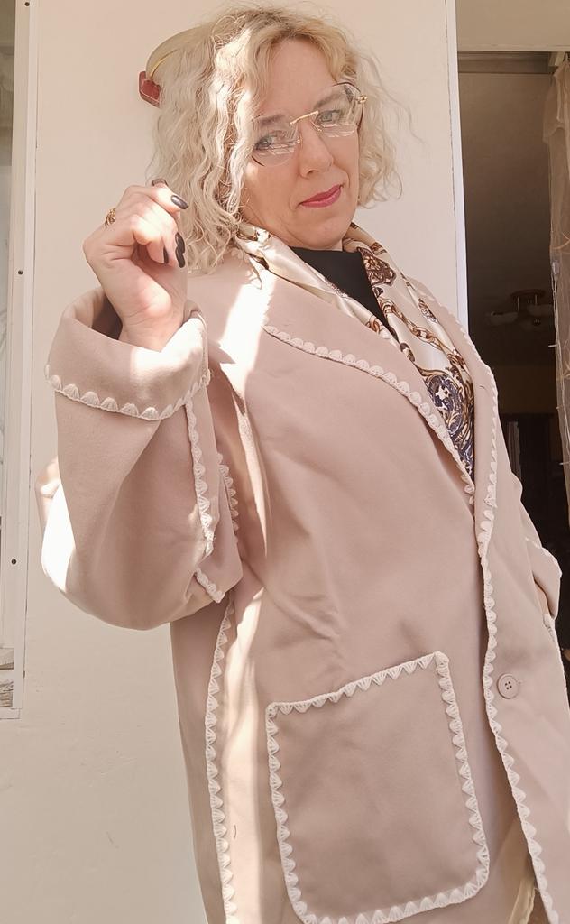 The set is good. The color is pleasant. It fits my size 52 well (loosely.) The material is thin, only for warm autumn or cool summer (evening.) The tailoring is excellent. I am delighted. It looks good on me. You can wear it with trousers, a skirt or a dress. Thanks to the store.