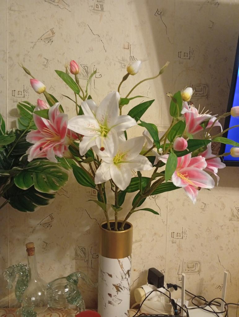 The lilies are magnificent!!! I bought three branches: 2 pink and 1 white. They got a little deformed on the way, but everything quickly recovered. Thank you very much for the beauty!