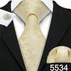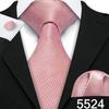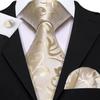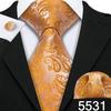 Barry.Wang Necktie Hankerchief Cufflinks Set Brown Red Black Plaid Jacquard Woven Wedding