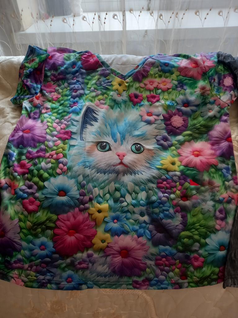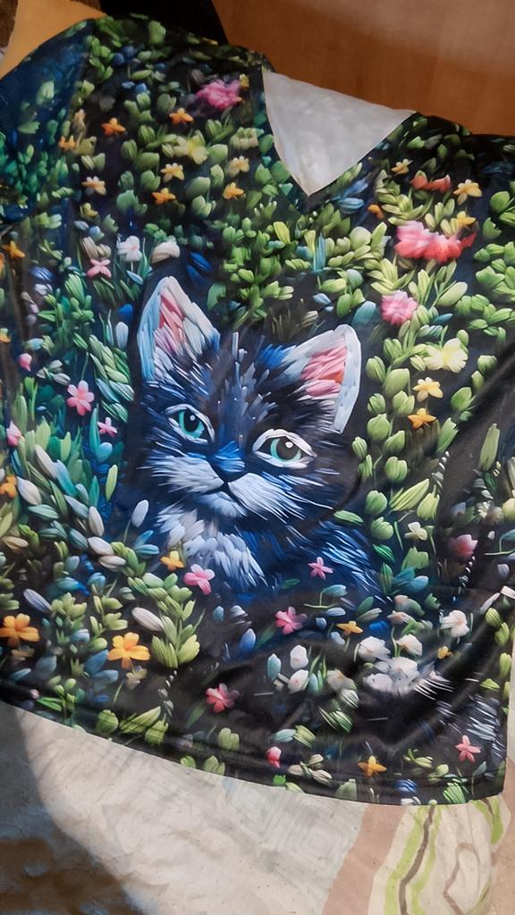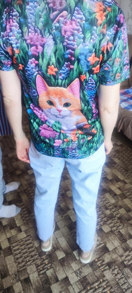 Terrible T-shirt, no 3D effect, and the cat's face looks like it was painted with Linke paint