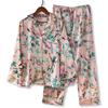 Print Flowers Pajamas Set Women Korean Home Wear Long Sleeved Set Satin Long Pant Casual Chic Sleepwear Trend