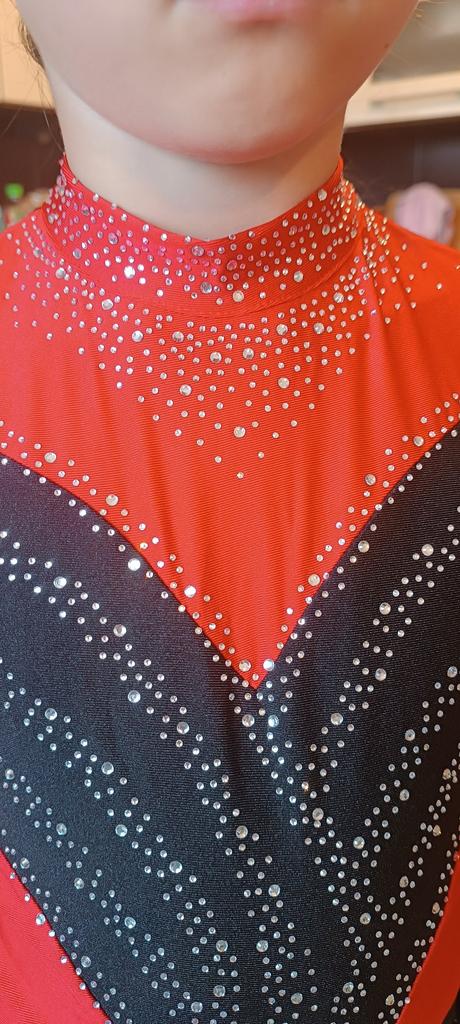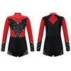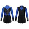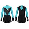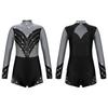 Kids Girls Stylish Clothing Long Sleeve Stand Collar Shiny Rhinestone Decor Contrast Color Gymnastic Dance Jumpsuit