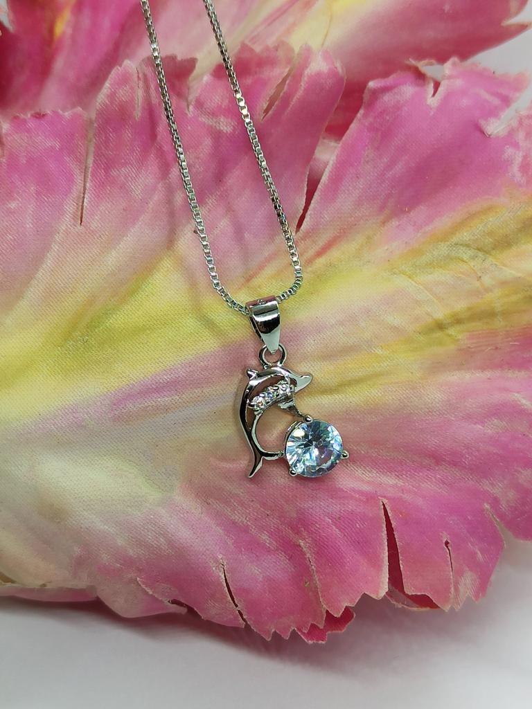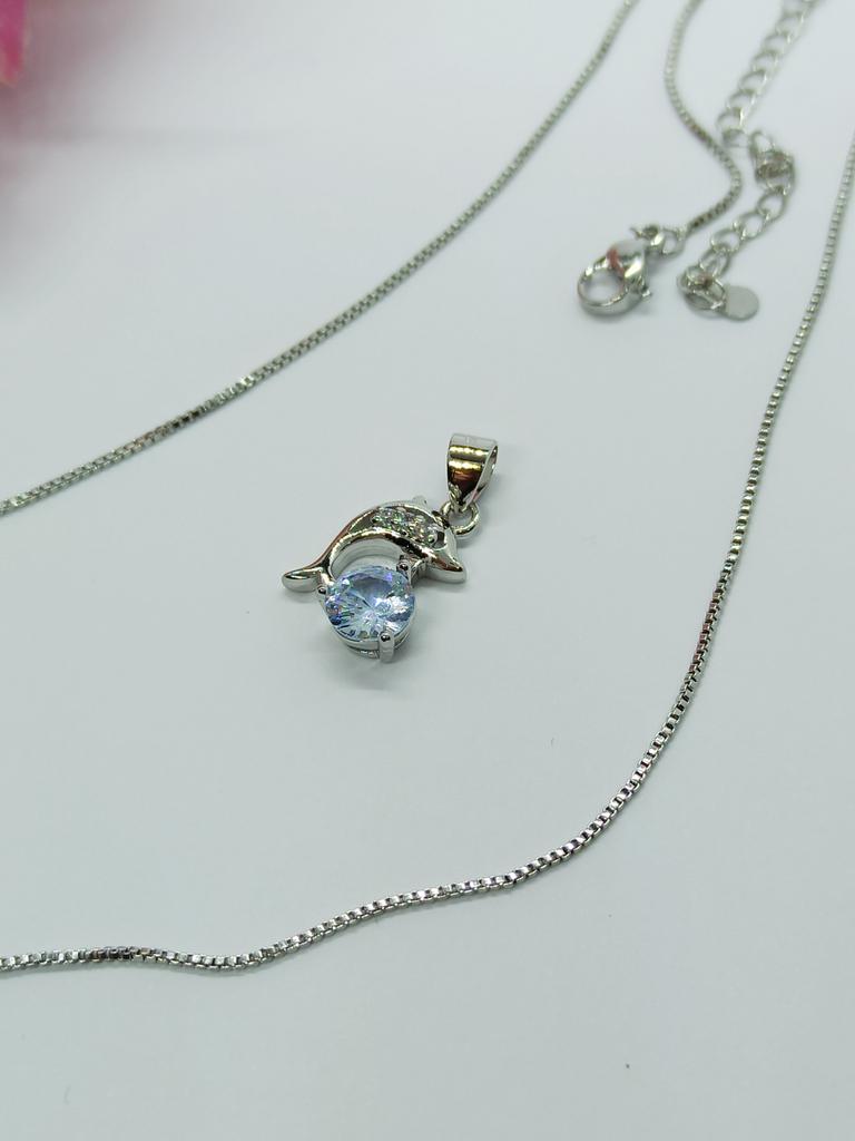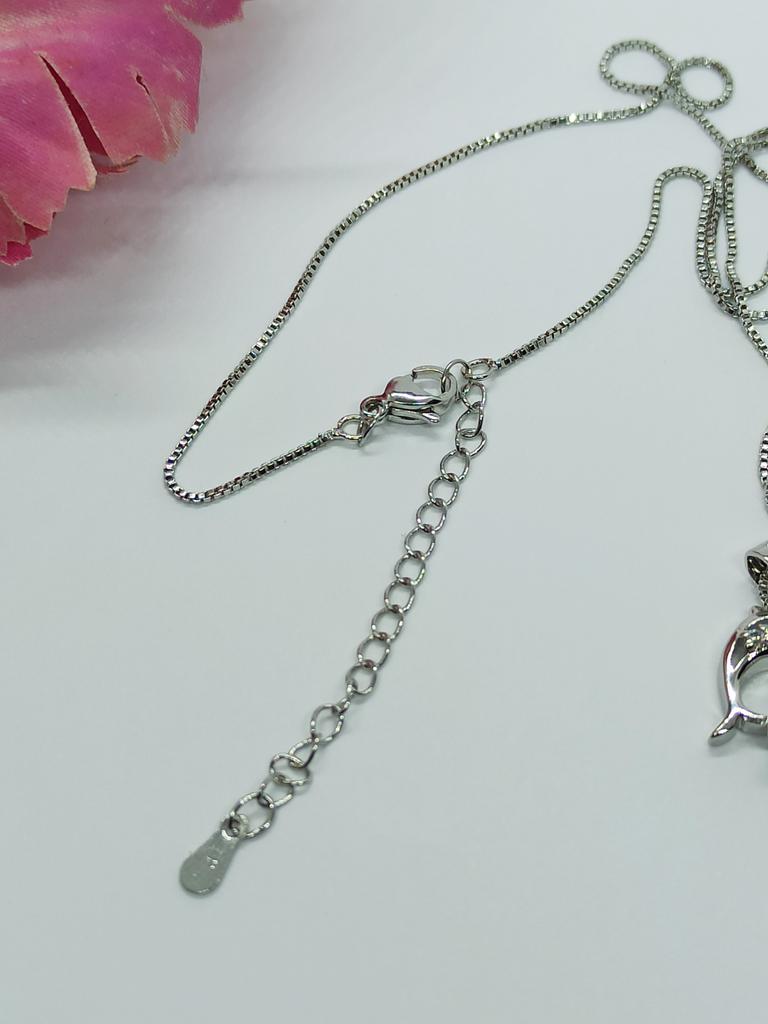 Dolphin pendant 🐬 with chain The decoration is made of stainless steel, although the chain itself is 925. The quality is excellent, the pendant is miniature, elegantly made, looks beautiful and is suitable for both girls and fashionistas. Chain length 45 cm, plus there are additional links to increase the length