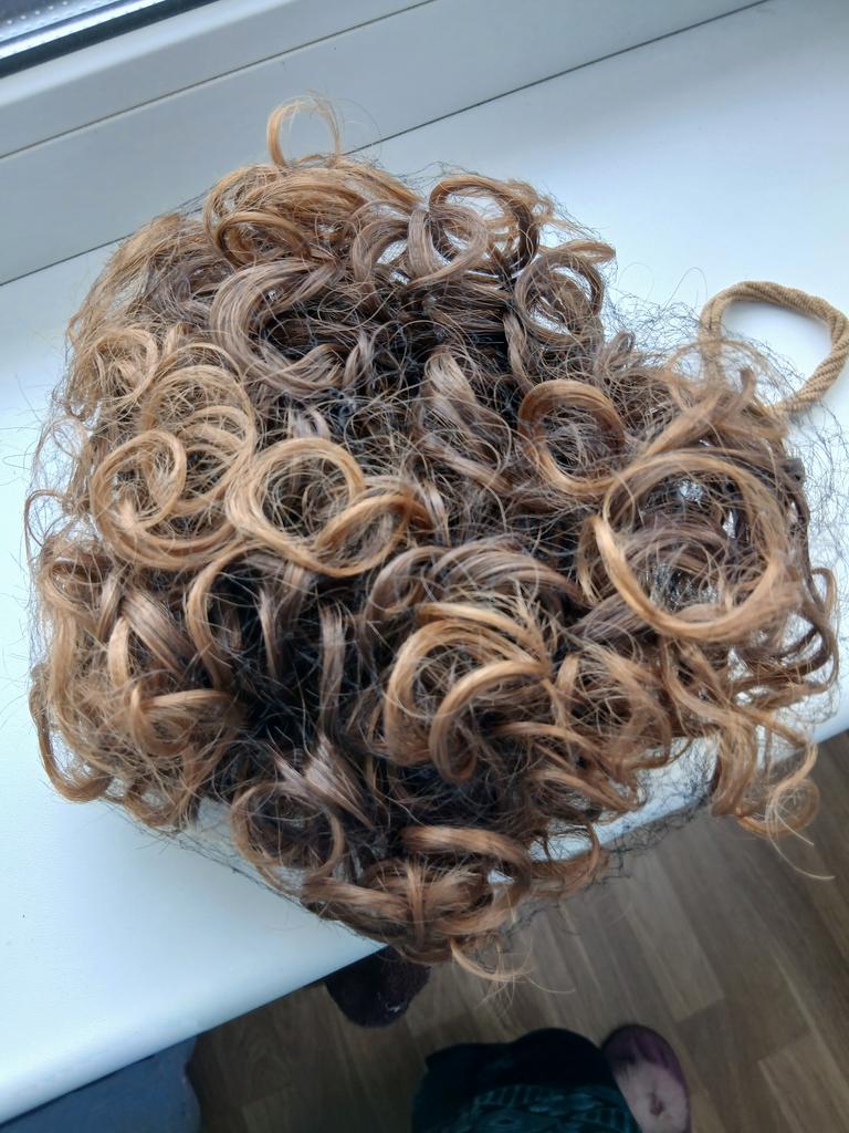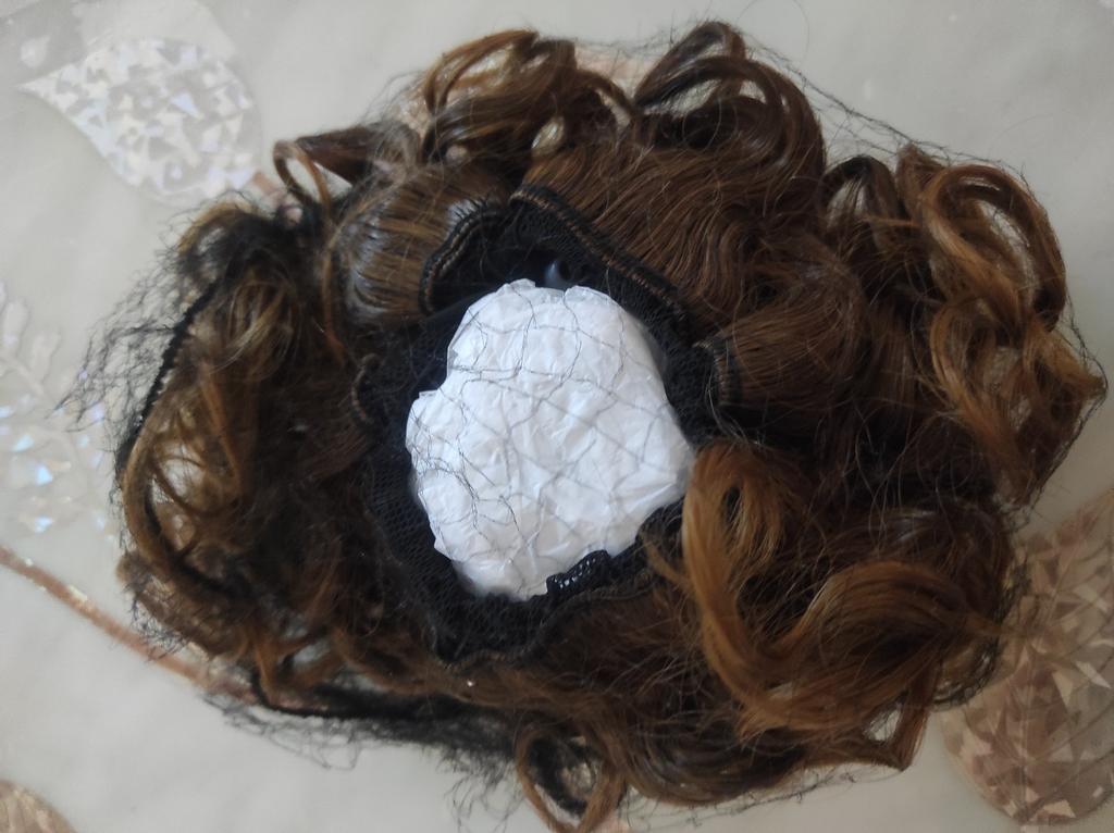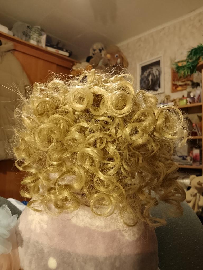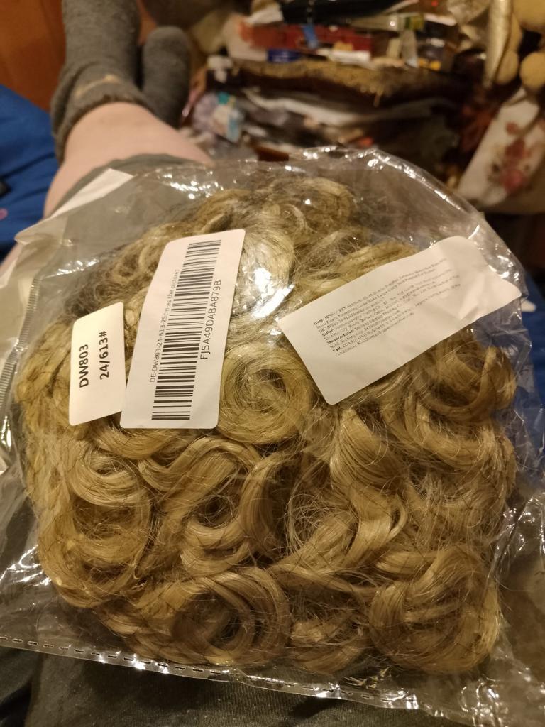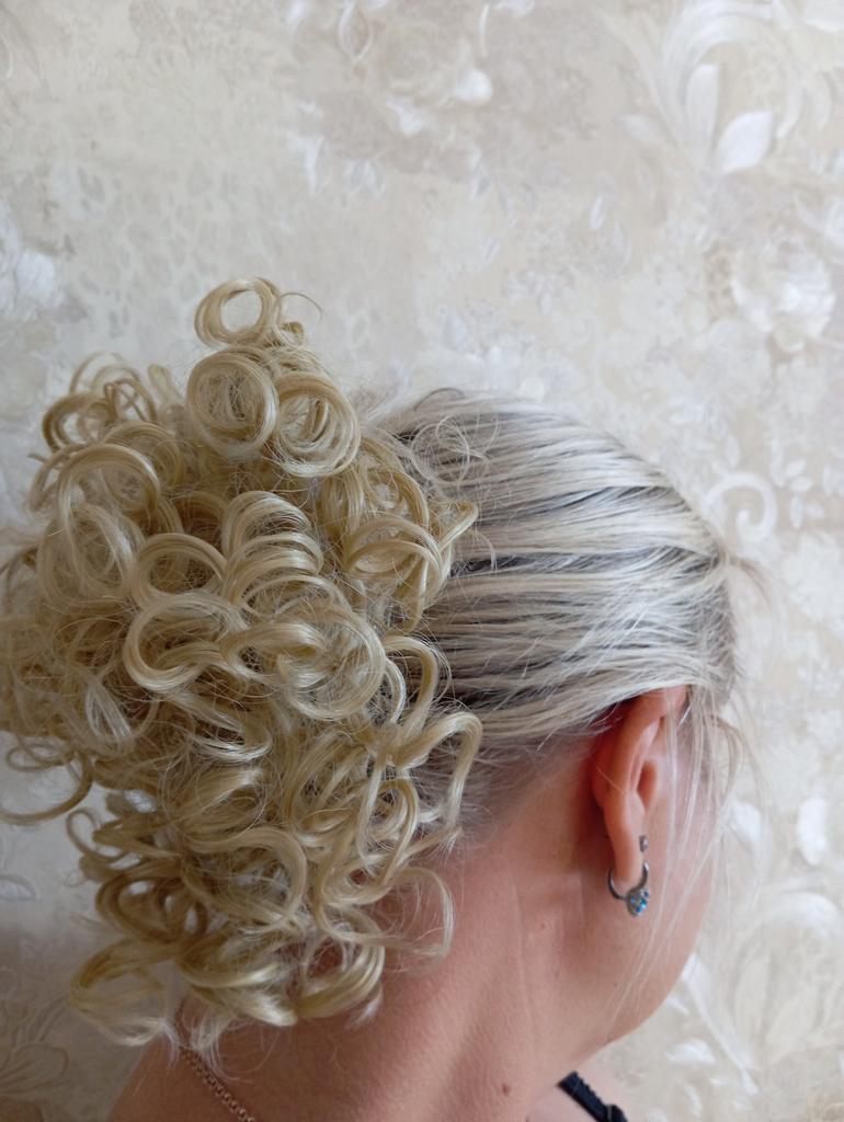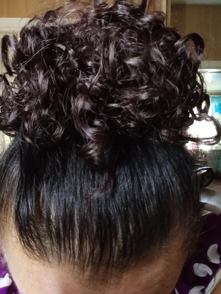 The bun is full of curls. The curls are long. You have to adapt, it’s round with a puff.