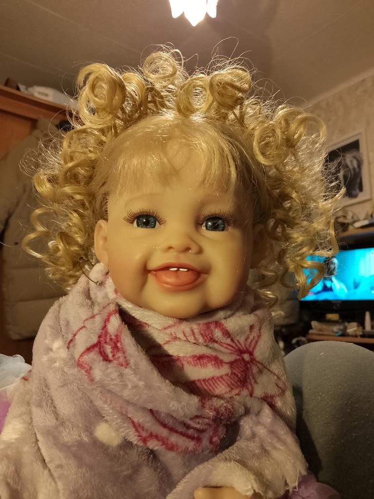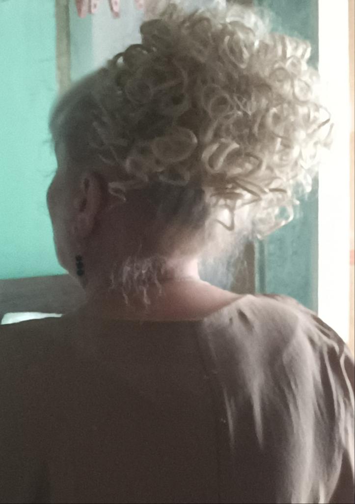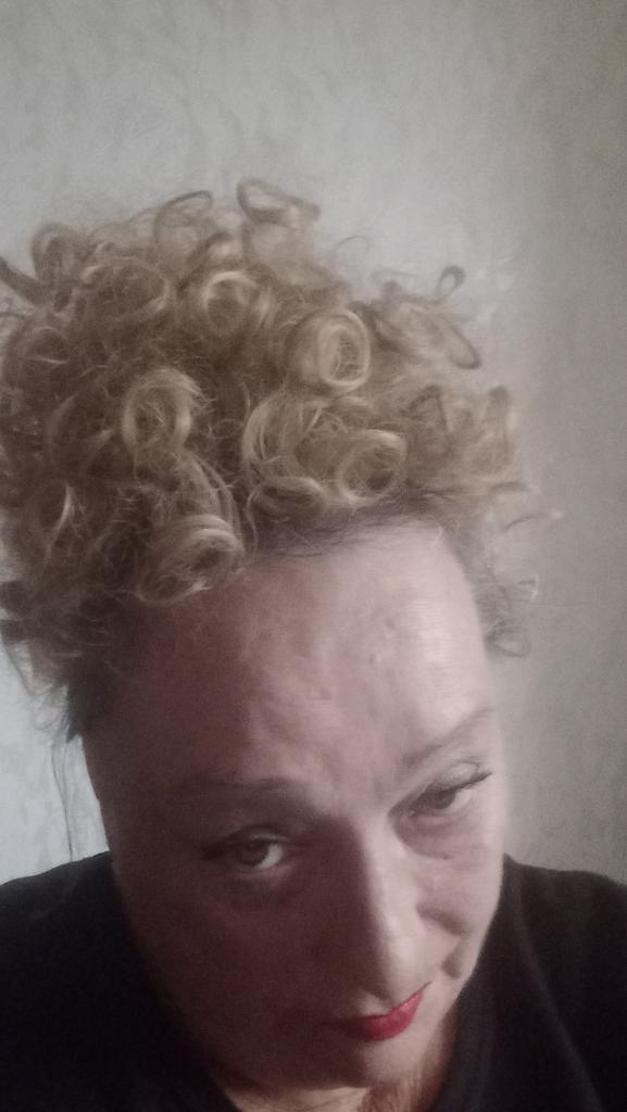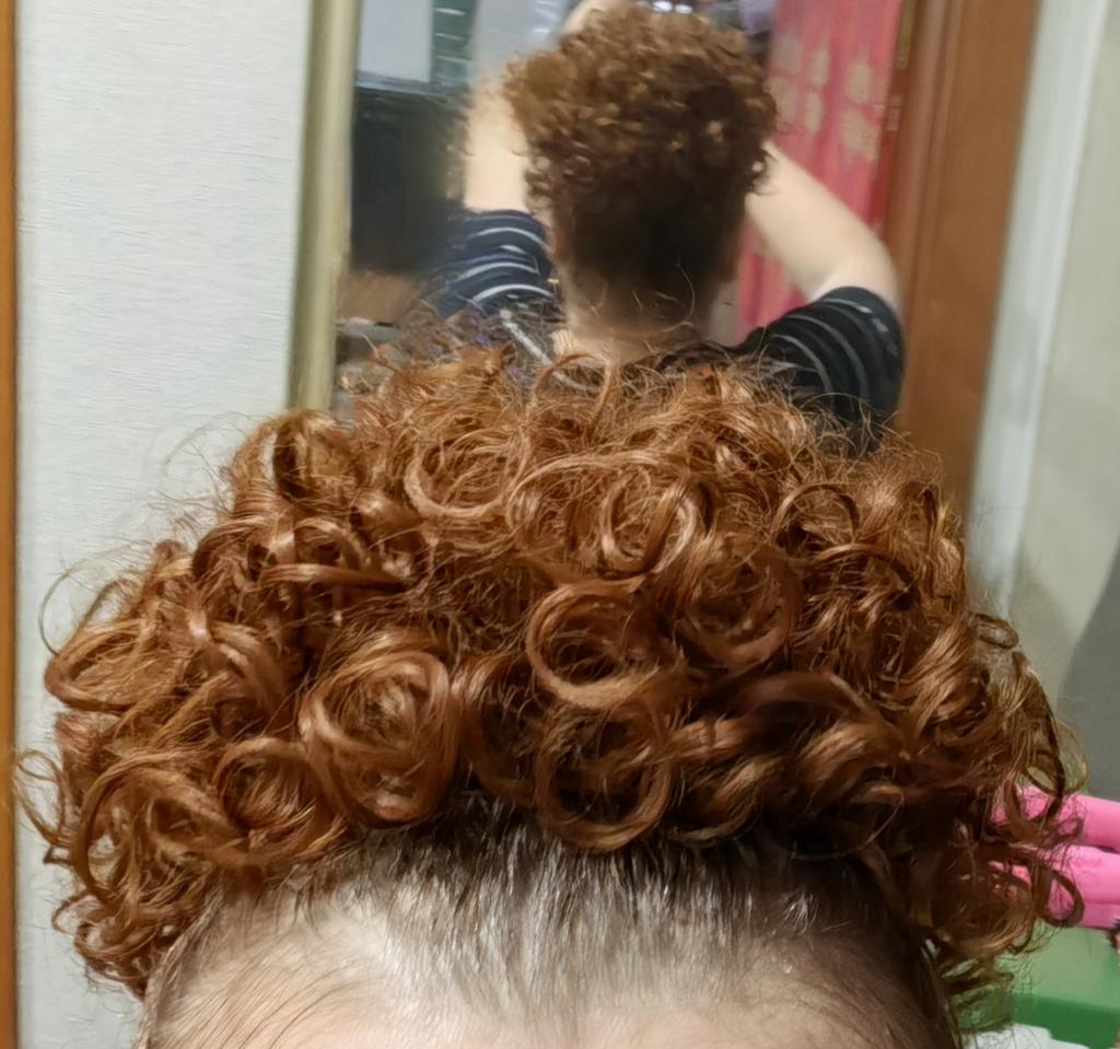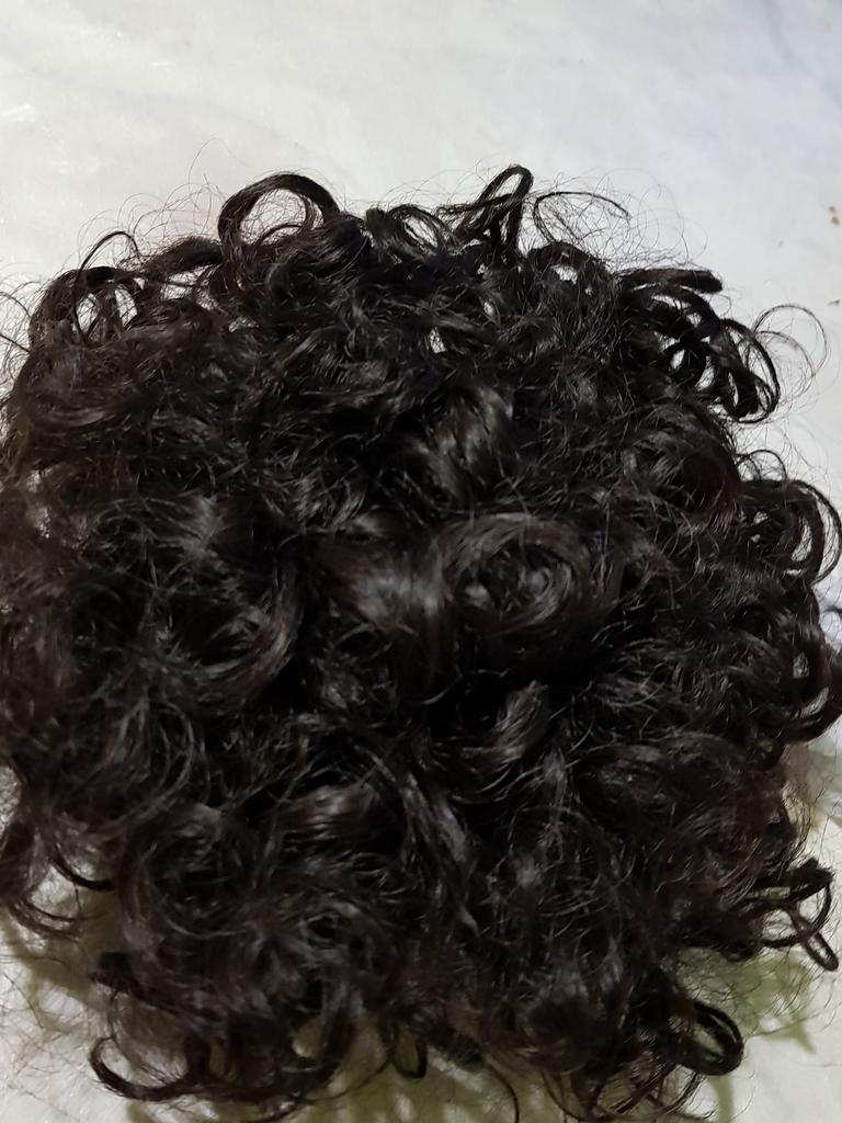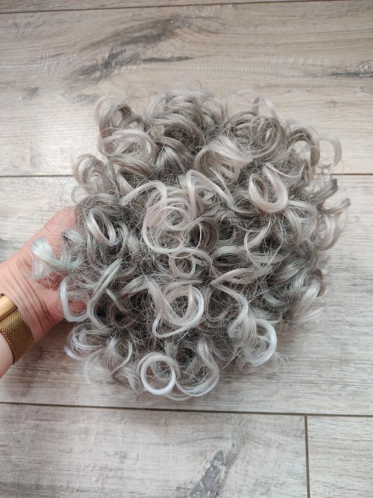 The bun is full of curls. The curls are long. You have to adapt, it’s round with a puff.