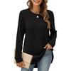 Autumn Winter Square Neck Stretch Rib Knit Top Solid Color Long Sleeve Loose T-shirt