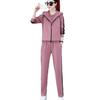 Introducing our versatile and stylish ladies suit, a three-piece set designed to elevate your casual wardrobe. Made from soft and skin-friendly polyester fiber, this suit offers ultimate comfort and flexibility for everyday wear. The set includes a long-sleeved letter print crewneck sweater, a color block hooded cardigan jacket, and three-piece sweatpants with pockets, creating a casual and fashionable sports outfit.