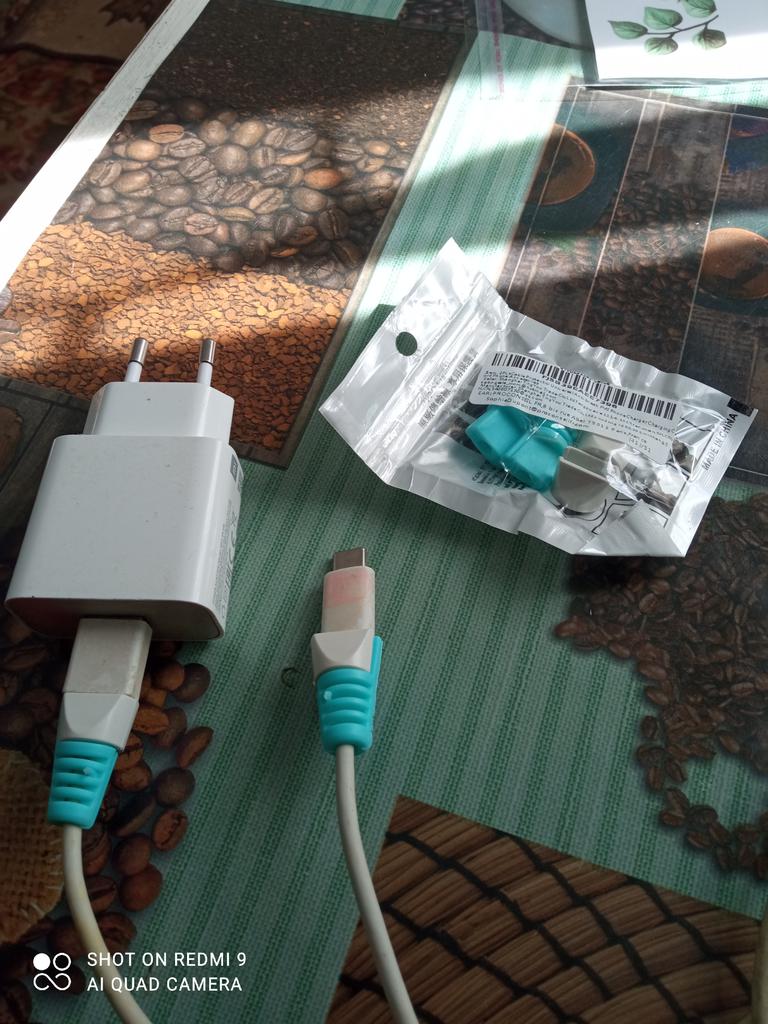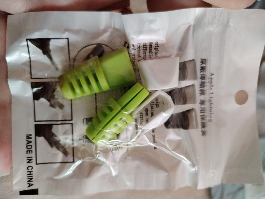 Silicone things, pleasant to the touch. But it doesn't fit the cord from the charger because it's a bit thick. But I put it on anyway. They're more suitable for thin cords.