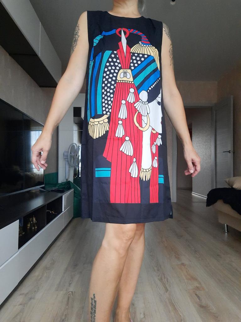 Bright, beautiful dress, corresponds to the size chart. Very pleased