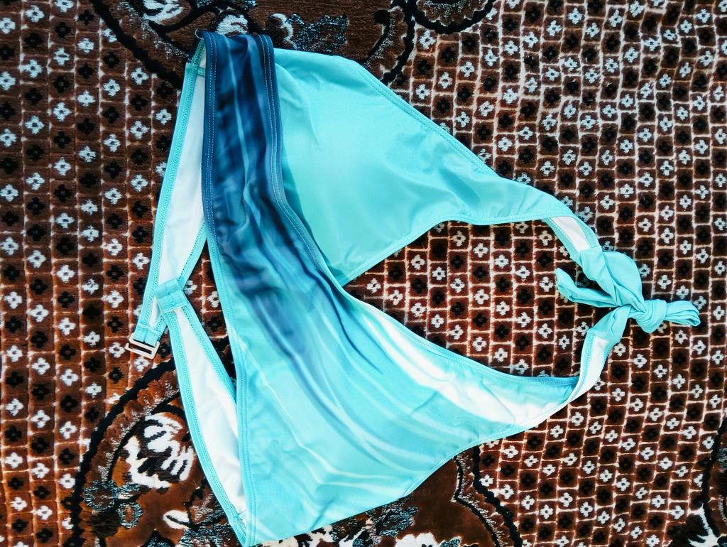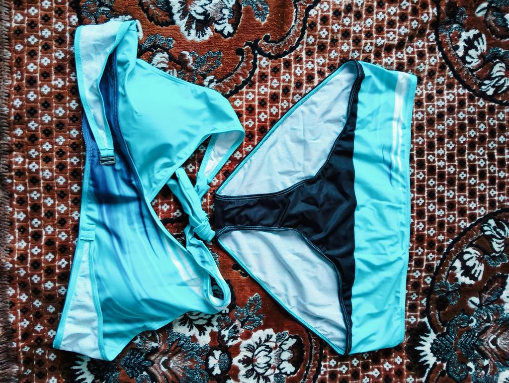 The swimsuit arrived, but it's a completely different model than in the picture. Instead of a regular bra with straps, there are ties here. And the color isn't as bright. But otherwise, in principle, the quality is not bad.