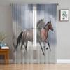 Black White Horse Watercolor Painting Modern Tulle Curtains for Living Room Bedroom Home Kitchen Window Sheer Curtains