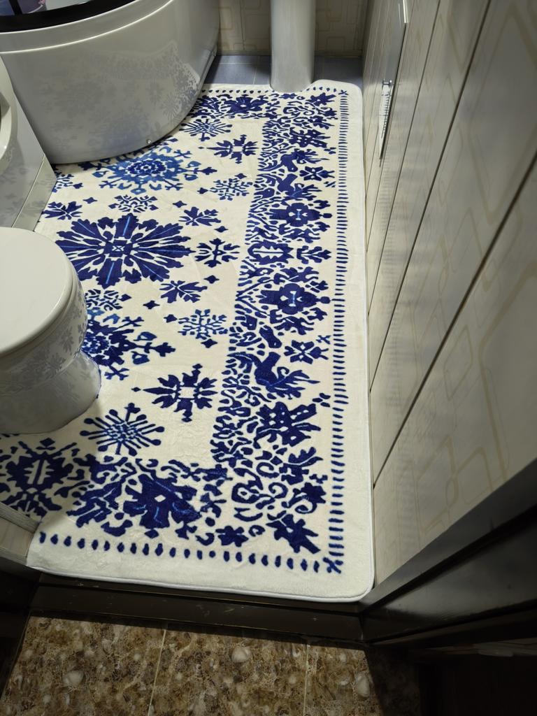 Blue Vintage Flowers Soft Kitchen Rug Anti-Fatigue Kitchen Rug Waterproof Non-Slip Rugs Set Runner Rug Bedside Rug Absorbent Carpet For Kitchen