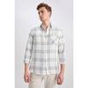 Modern Fit Polo Neck Long Sleeve Checked 100% Cotton Shirt