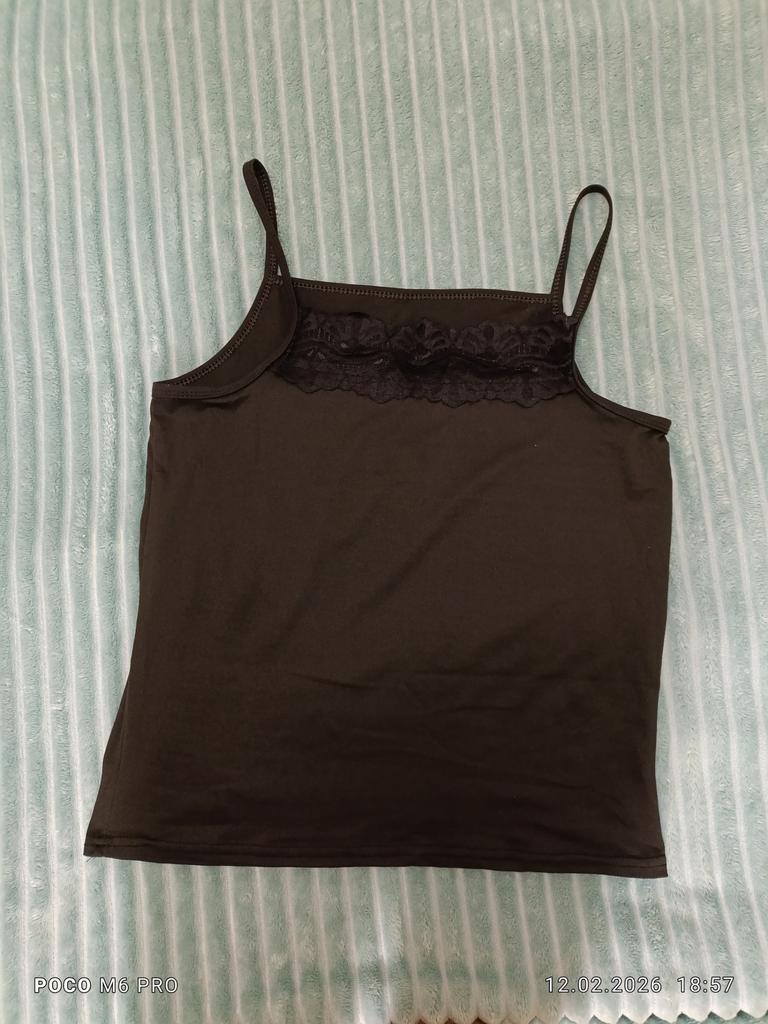Fits size 48. Good T-shirt for home, for sleeping. Cotton