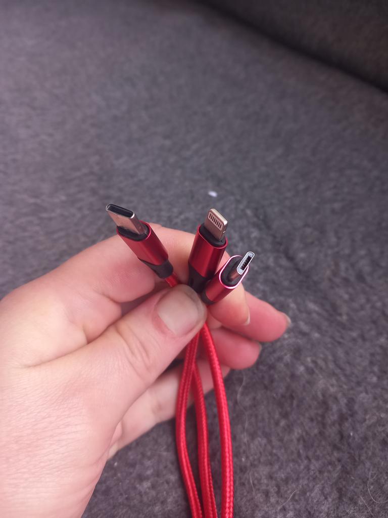 🔌Helpful 3 in 1 charging cable 🔌3 charging plugs are available Verfügung (USB C, Micro USB, Lightning) 🔌Very solid workmanship 🔌Fast and well packaged delivery 🔌High quality and affordable price 🔌Highly recommended 👍 👍 👍