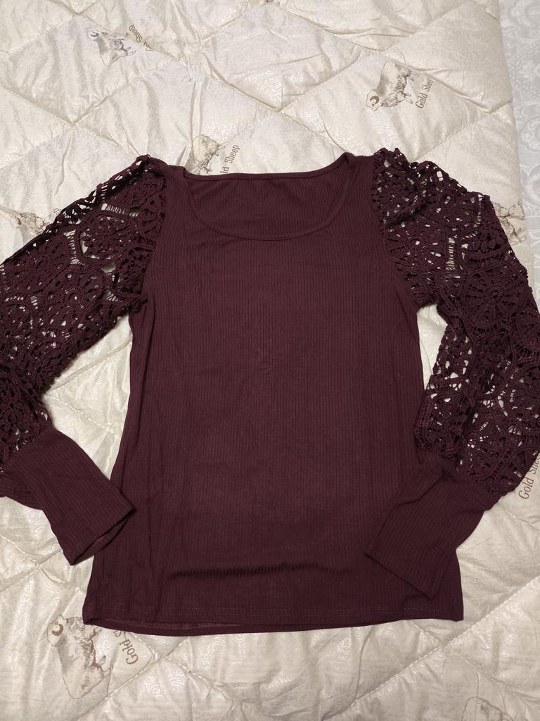 The blouse has wide sleeves at the bottom. Not lace, but the knitted part is wide, looks awkward. I didn't like that.