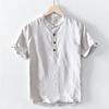 Summer Short Sleeves T-Shirts for Men Daily Casual Tops&TeesStand Collar White TShirt Cotton Linens Chinese Style Buckle Tshirt 5XL
