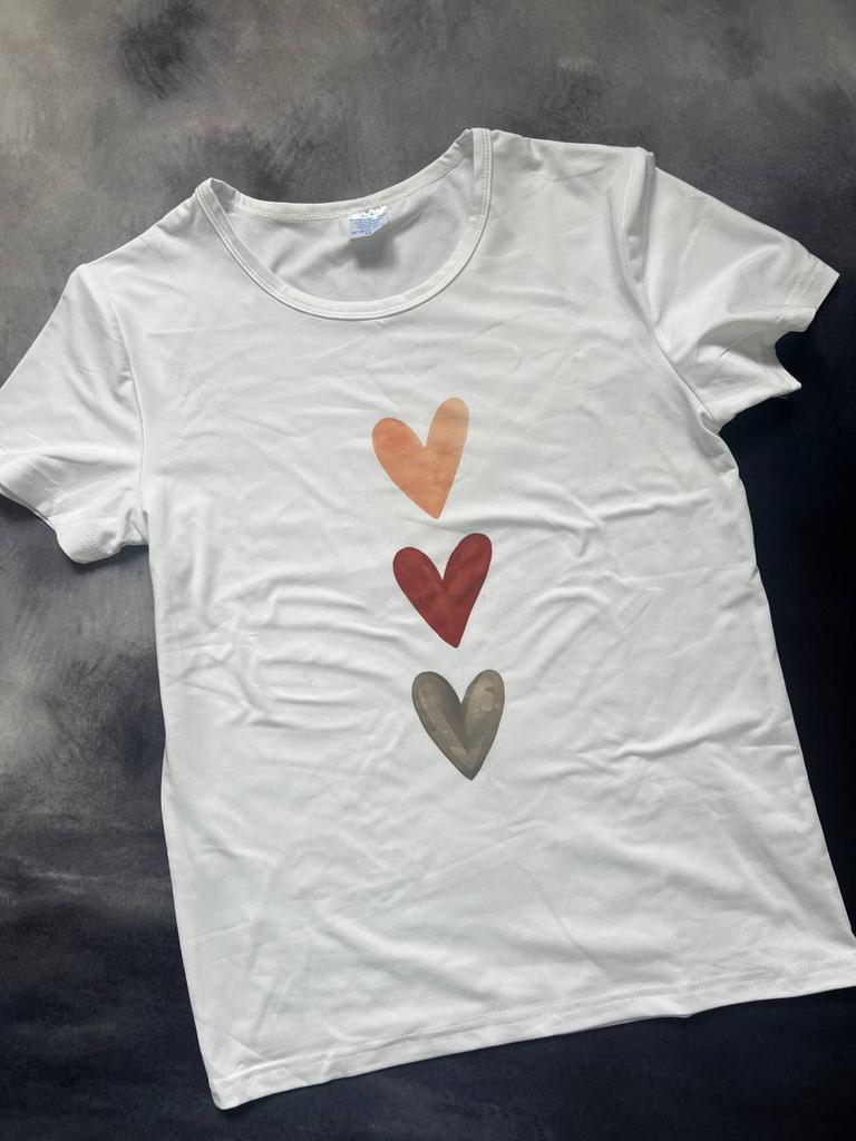 Short Sleeve Casual Ladies Fashion Female Graphic Tee Women Love Heart Watercolor Sweet Print Summer T Clothing T-shirts