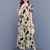 Summer Plus Size 2 Piece Sets Women Outfit Elegant Loose High Waist Wide Leg Trouser Sets Female