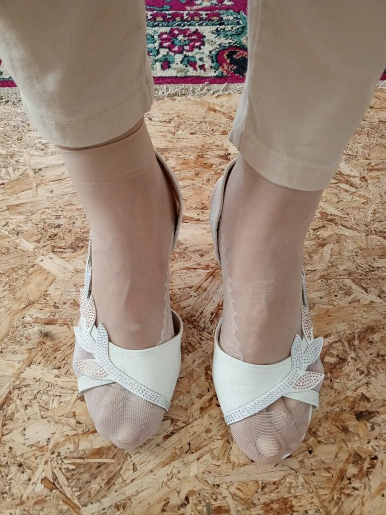 The size is rather full, a little loose. The color of the product does not match at all: I ordered white, but cream ones arrived. And they are not so elegant and do not look good