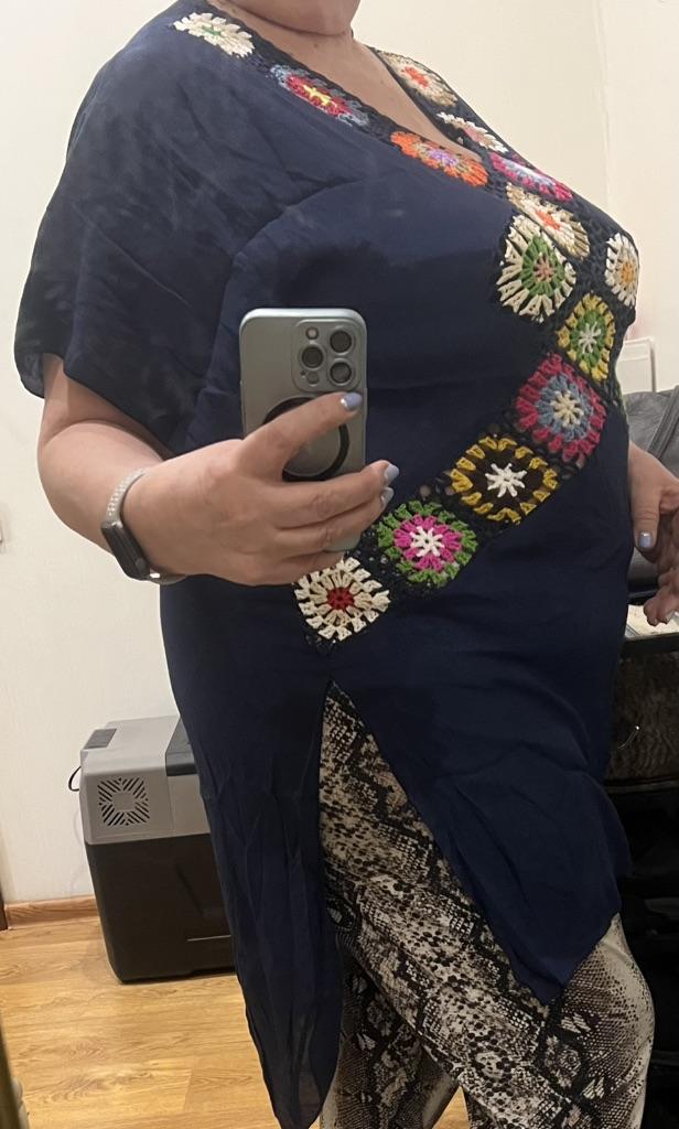 Size 56 - 60 will be good, it's big on me at 52-54, but it's comforting that this cover-up dress will only be needed on the beach, so it will do