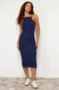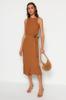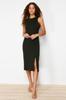 Women's Fashion Business Sleeveless Midi Black A-Line Midi Crepe Woven Dress