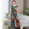 Plus Size Summer Pants Sets for Women Elegant Loose Vintage Print 2 Piece Outifts