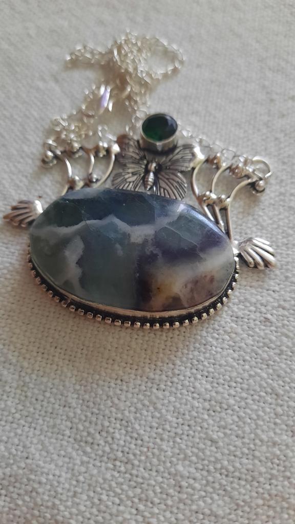 I was expecting a purple shade, like in the photo, but I got green. The pendant is beautiful. Therefore five stars
