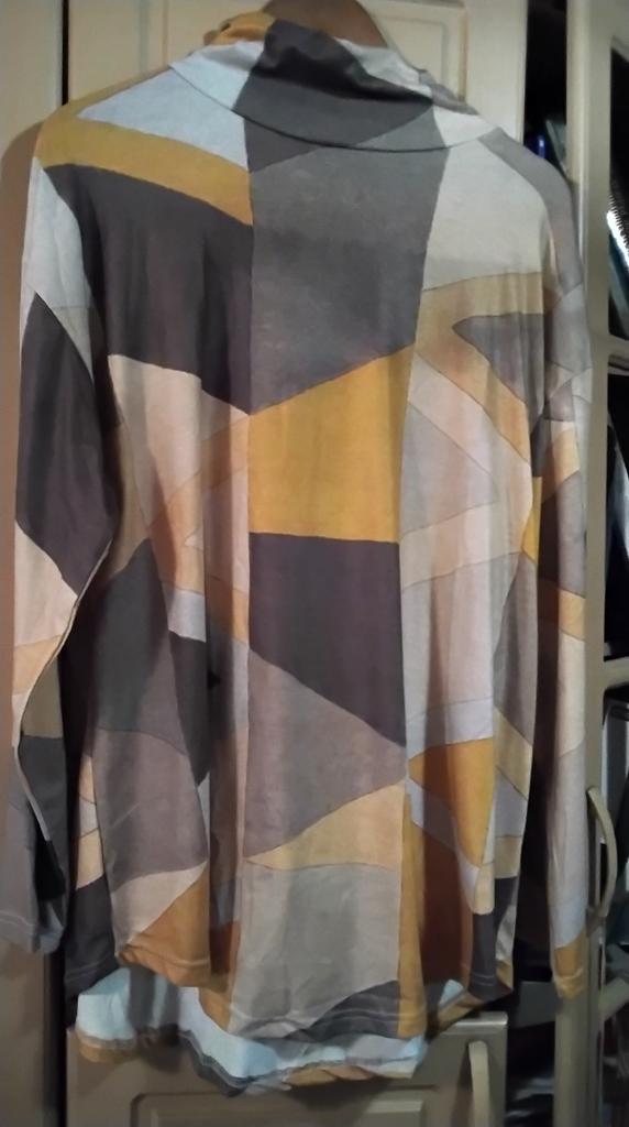 I made a decision for myself - I will not buy things anymore. It is difficult to choose the size. The sleeves are like Harlequin's, I will have to cut them off again. Maybe it's a fashion. But it's not for me. I only encounter this here, that I can't choose the right size.