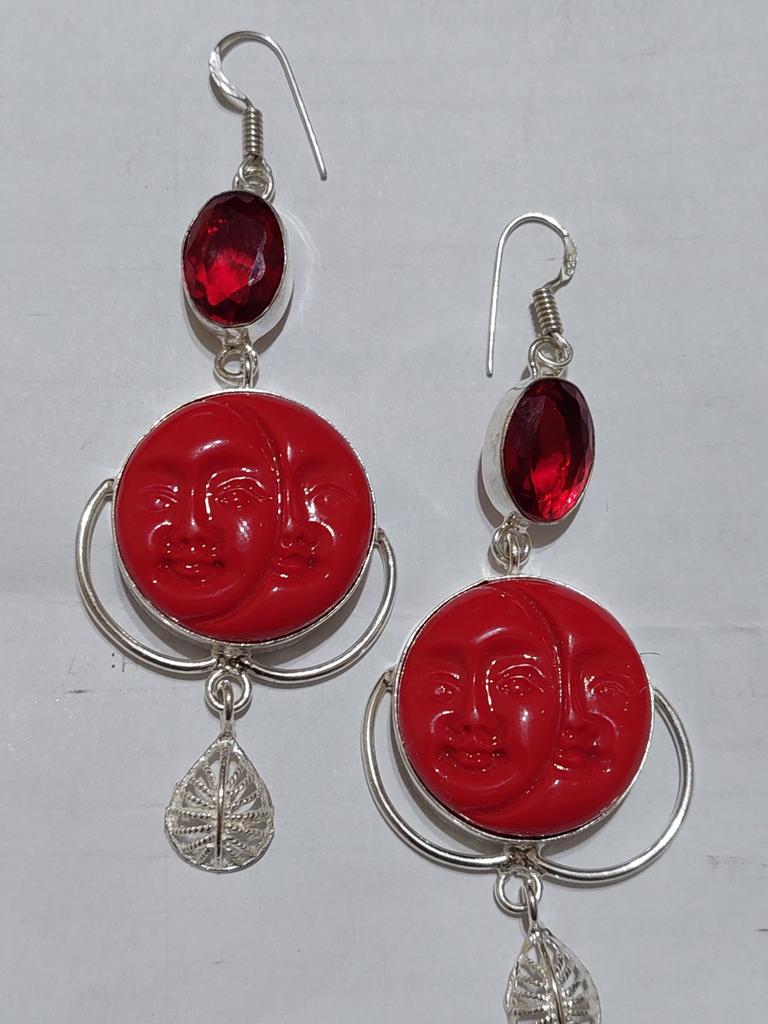 Natural Red Coral, Garnet Gemstone 925 Sterling Silver Earring 3.43" C8O40