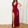 Women Solid Split Thigh Plunging Neck Bodycon Dress Summer Party Dresses For Ladies