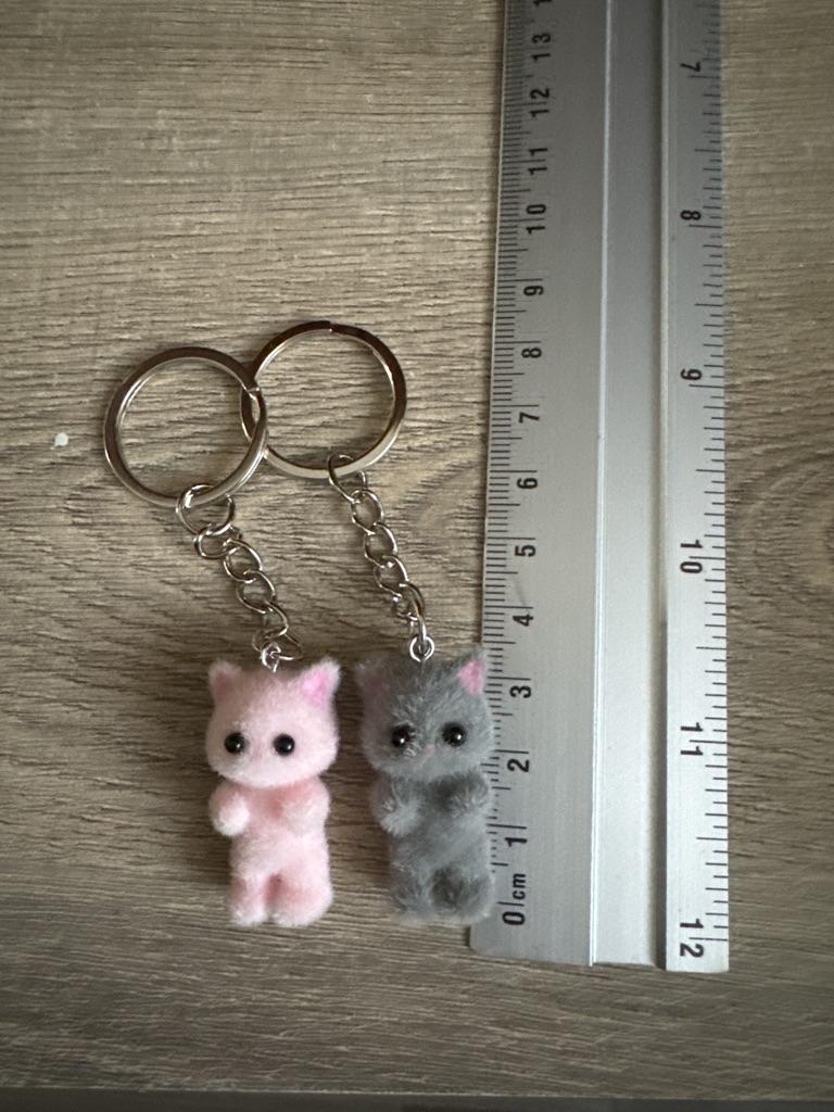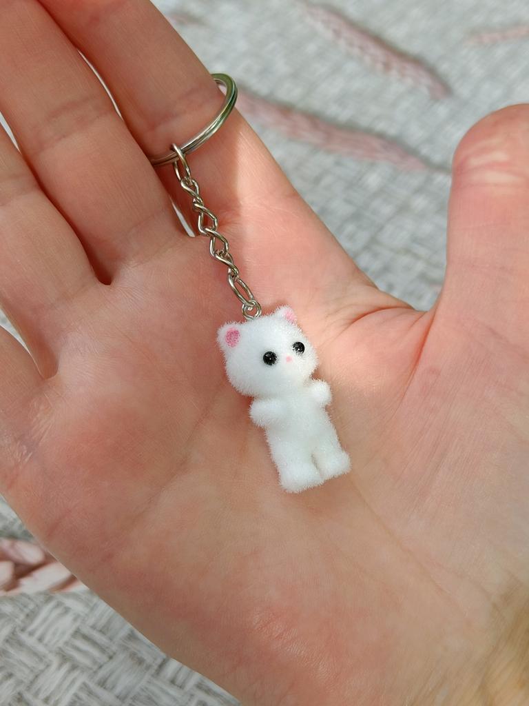 Cute Flocking Animals Cartoon Cats Shape Keychain Resin Dolls Beads Pendant Diy Jewelry Schoolbag Garment Accessories Gift