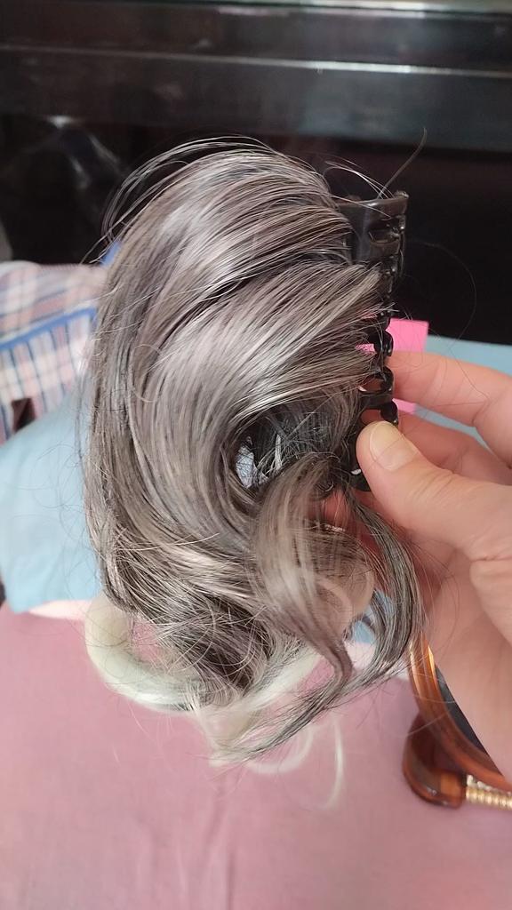 The item does not match in color. In the picture, the hair is gray-white, but the ponytail that arrived has black-white hair. I needed a ponytail that was specifically gray or gray-white.