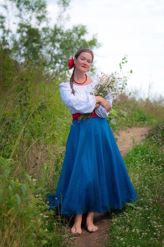 The skirt is sewn qualitatively. The color is not as blue as in the photo, rather green-blue, and more muted. The elastic band was put on the waist of 105 cm, comfortably. Thank you, I recommend.