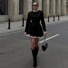 Summer High Waist Dress Women Street Fashion Long Sleeve Splice Lace Dresses Womens Casual Slim Elegant Dress Party Retro Birthday Gift Woman Clothes