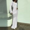 IHUASU Autumn and Winter Women's Fashion Solid Color Round Neck Long Waist Temperament Slim Dress