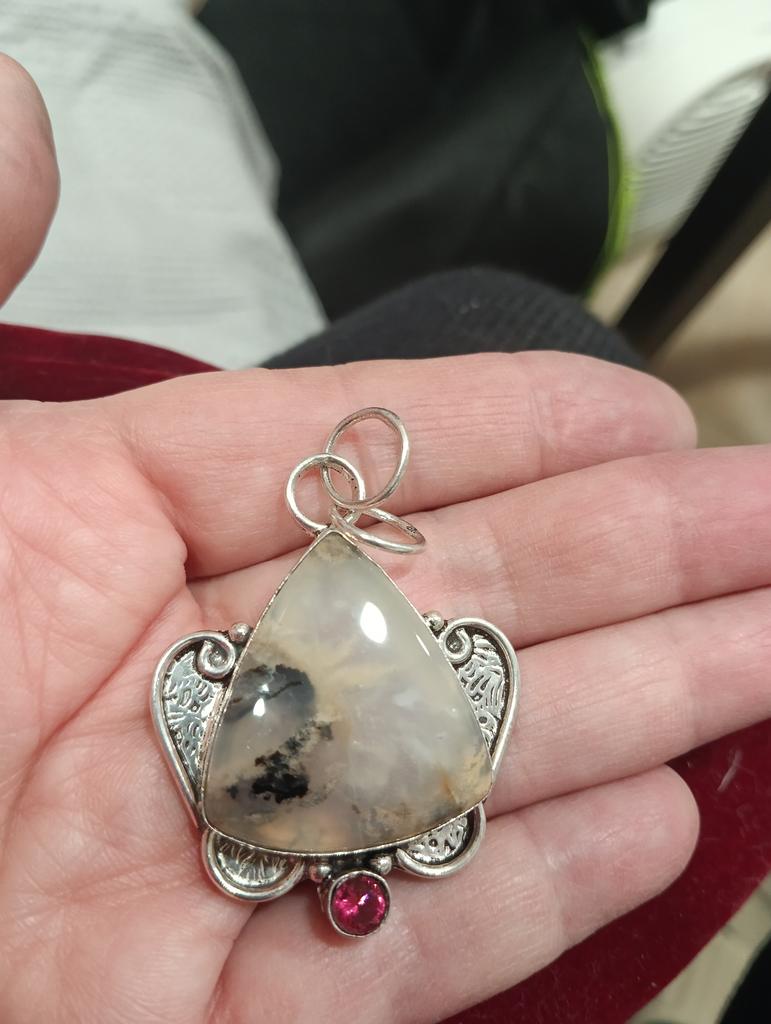 Natural Russian Dendritic, Rubillite 925 Sterling Silver Pendant 2.17" G3A07