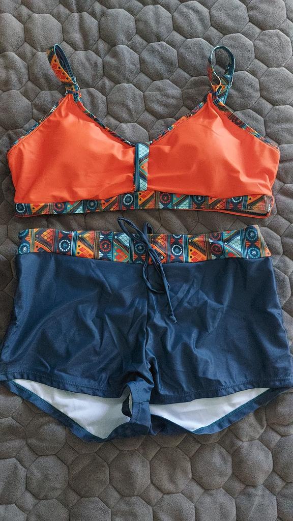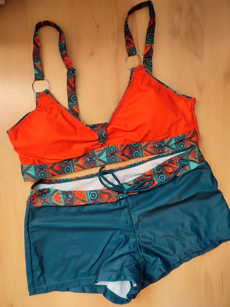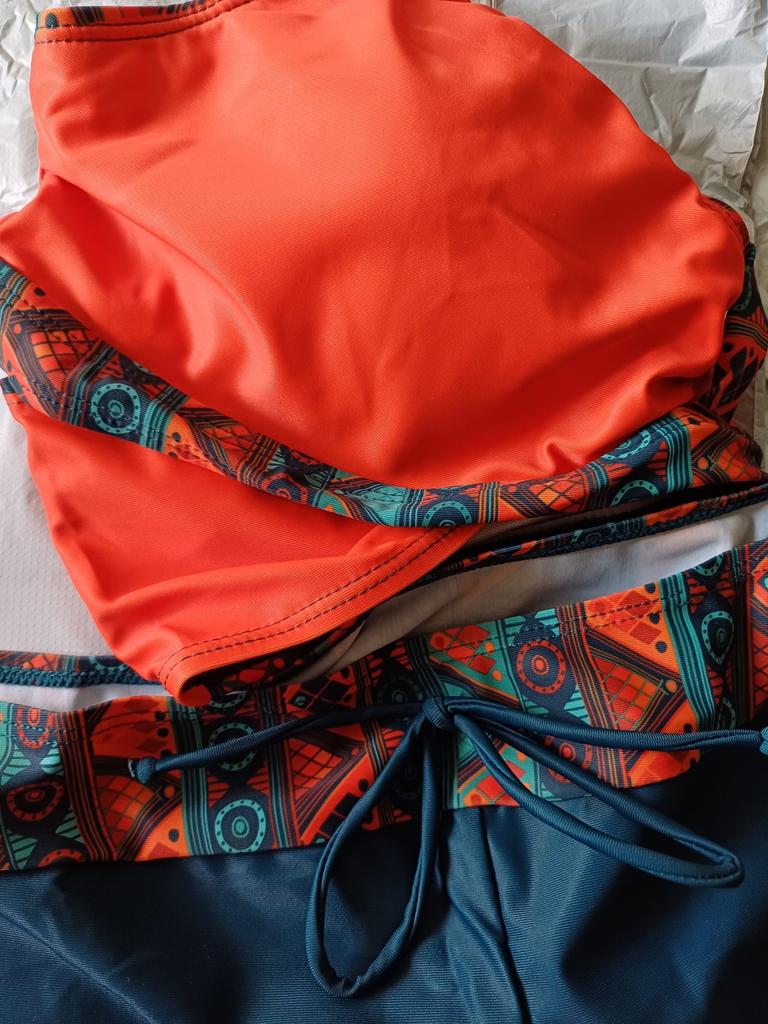 The swimsuit is incredibly beautiful and absolutely pointless. The top is apparently for a woman with silicone breasts so that it stands up on its own, because it holds nothing. There isn't even a normal elastic band at the bottom. The shorts are made for a large belly. Ladies with a tummy will be comfortable. Otherwise, the material and sewing quality are excellent