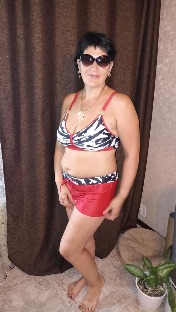 The top is too small for size 52. Or rather, the chest becomes flat. But overall, the swimsuit is beautiful. The fabric is pleasant. The threads do not stick out.