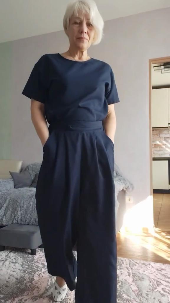 The blouse is big, the trousers are just right for size 48